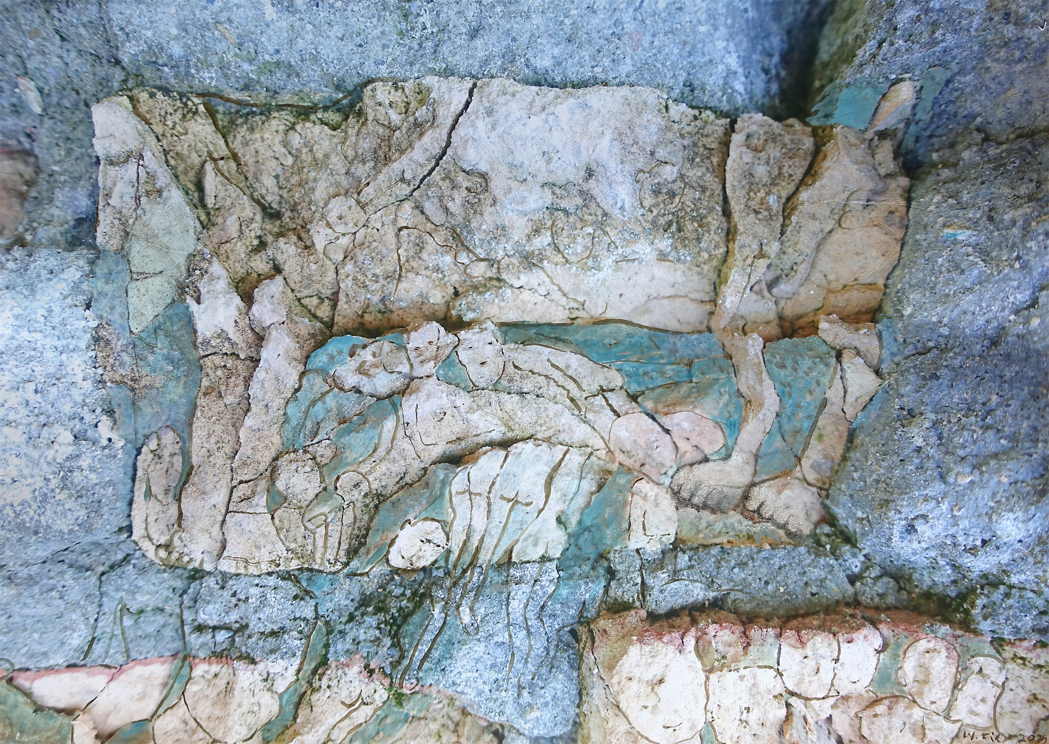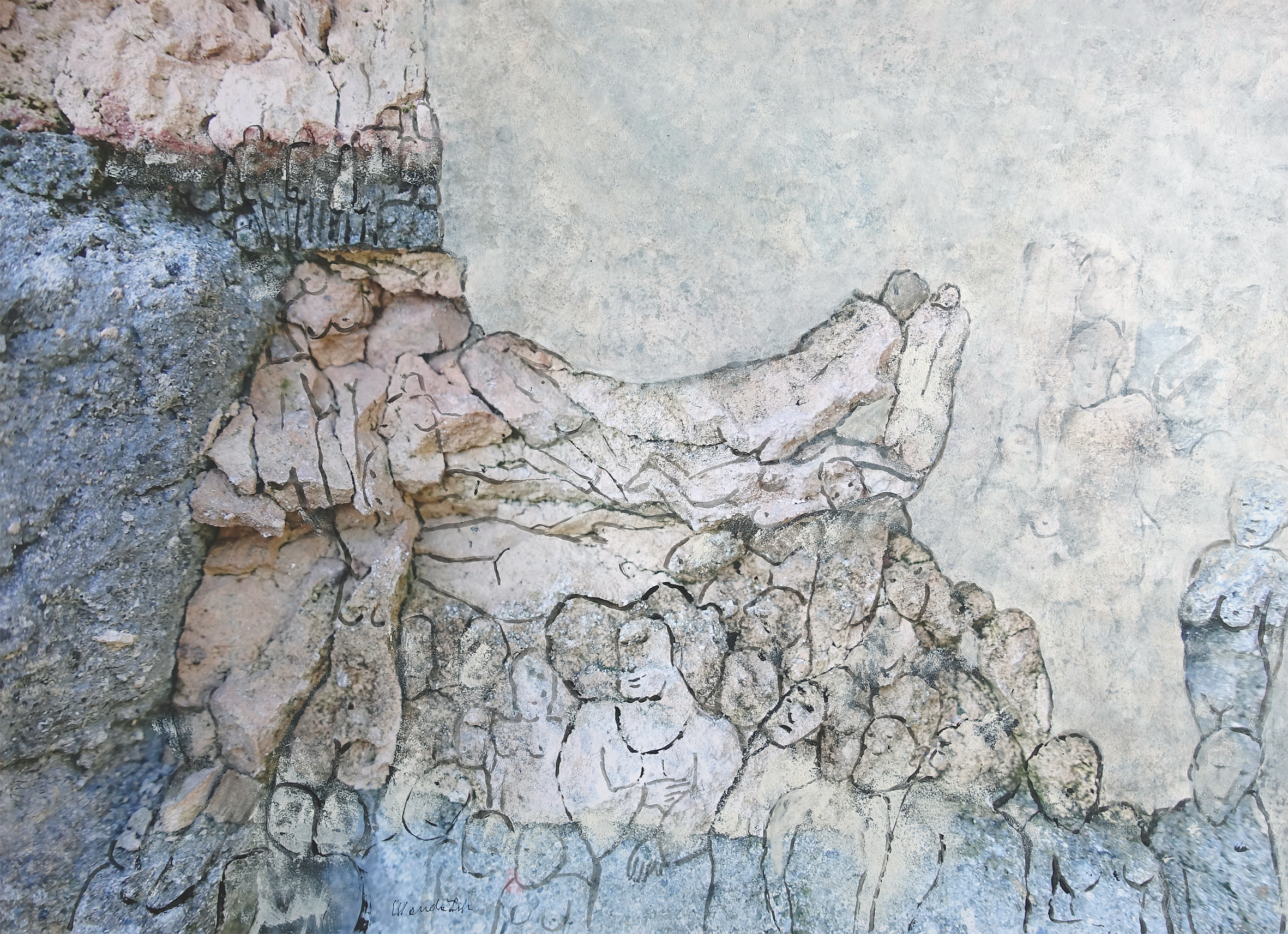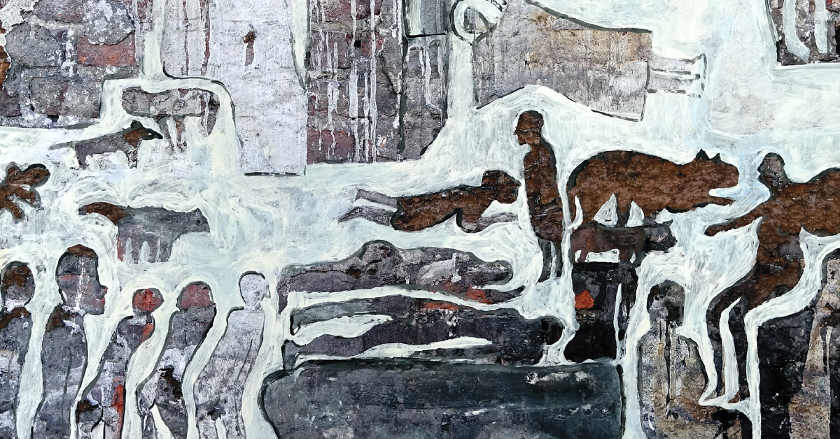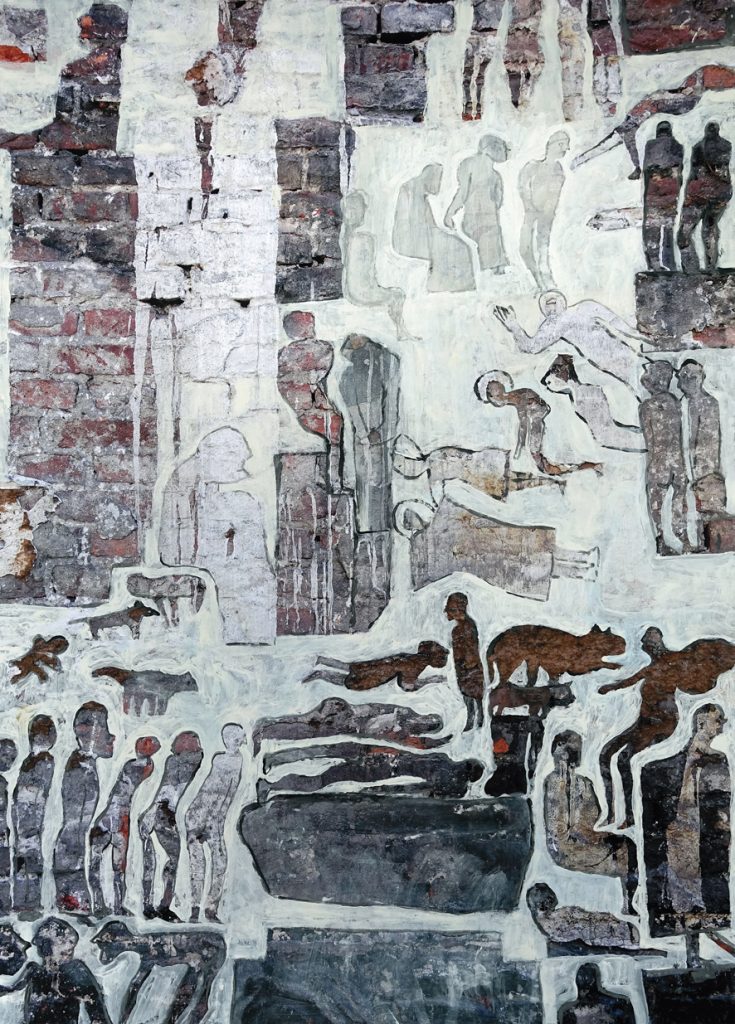 Zdjęcie wyróżniające to fragment pracy DALEKO OD EDENU (technika własna na papierze, 50×70 cm, 2022 r.):