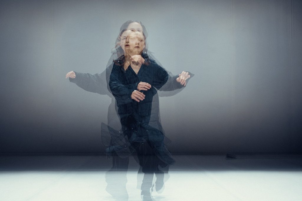 Dominika Wiak w brawurowym „Misspiece” proponuje autorski sposób obecności na scenie, który świadomie odcina się od klisz kobiecości i uprzedmiotawiającego męskiego spojrzenia. To ruch inspirowany kulturą house, transowy i dynamiczny, prowadzący do uwolnienia, w którym doświadczenie podmiotowości ulega zatarciu. Obszerny pikowany płaszcz jako kostium performerki jest także narzędziem wyjścia poza kategorię płci. Znajdująca się na scenie opakowana rzeźba, która nie zostaje nigdy odpakowana, zdaje się przypominać, o tym jak zwodnicze jest skupienie na tym, co konwencjonalne i powierzchowne, bo najważniejsze doświadczenie taneczne odbywa się we wnętrzu i nie ujawnia się wprost.