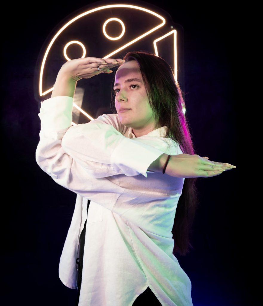 Nataliia Hrytsyna jest tancerką i performerką, zajmującą się tańcem współczesnym, improwizacją, techniką Gaga oraz od kilku lat aktywnie działającą w kulturze ballroomowej w Polsce. Głównym punktem jej pracy artystycznej w tym roku było tworzenie solo Becoming Body, które zaprezentowała na kilku festiwalach w Polsce – Festiwalu SoloDuo w Teatrze Rozbark, Festiwalu Kalejdoskop w Białymstoku, Move Festival w Zielonej Górze, Mandala Performance Festival we Wrocławiu i Zjednoczonych Stanach Zmyślonych w Teatrze Rozbark. Wystąpiła również w październiku w premierze spektaklu Mars (Scena Supernova, Kraków) w roli performerskiej. W tym roku ukończyła Kurs Choreografii Scenicznej u Iwony Olszowskiej, kurs Ruchu Autentycznego w Krakowie oraz GagaLab w ośrodku Orsolina28 we Włoszech. Wcześniej rozwijała się także jako stypendystka w Tanzquartier Wien w ramach programu Body & Performance Practices oraz w Krakowskim Centrum Choreograficznym i Krakowskim Teatrze Tańca.