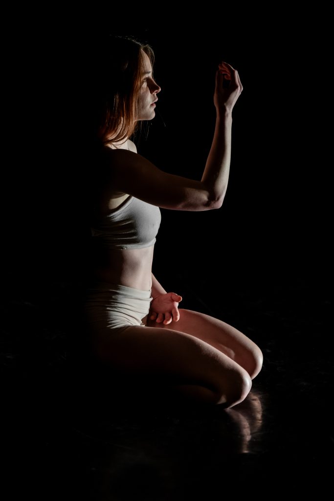 Valeria Putylia pracuje na styku voguingu, improwizacji i performance’u, czerpiąc z kultury klubowej, kobiecości i rytuału, które przekłada na ekspresyjny ruch. Obecnie jest uczestniczką kursu Taniec i Terapia Tańcem na bazie Life/Art process Anny Halprin.